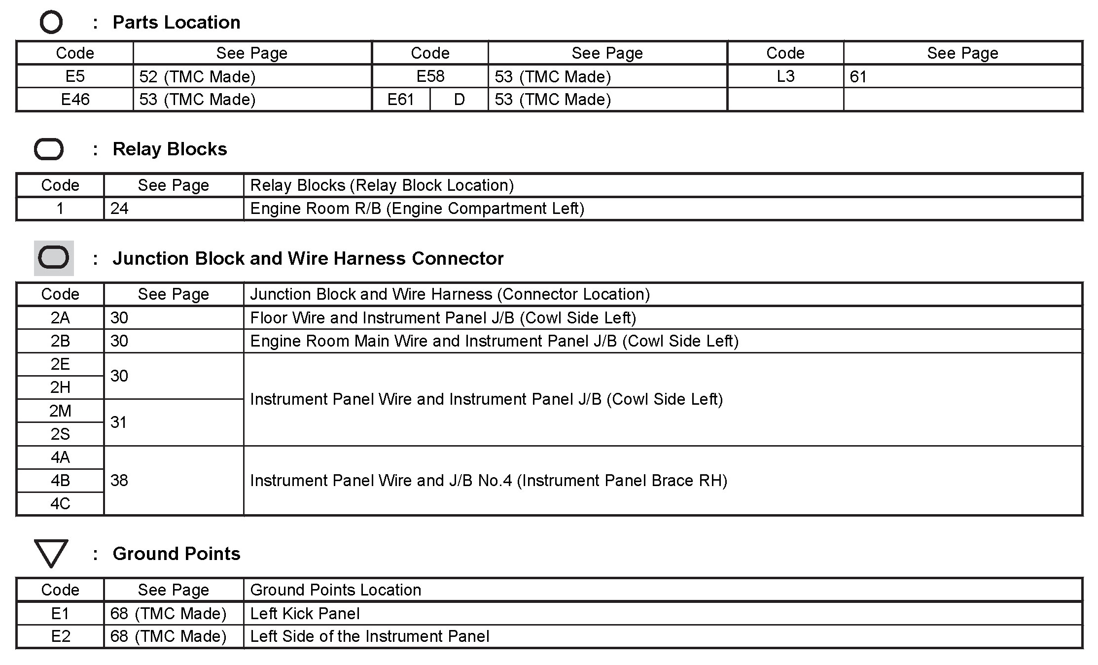 Locations: The locations of components, connectors, ground points, and splices referred to within these diagrams can be found at Vehicle Locations. Locations