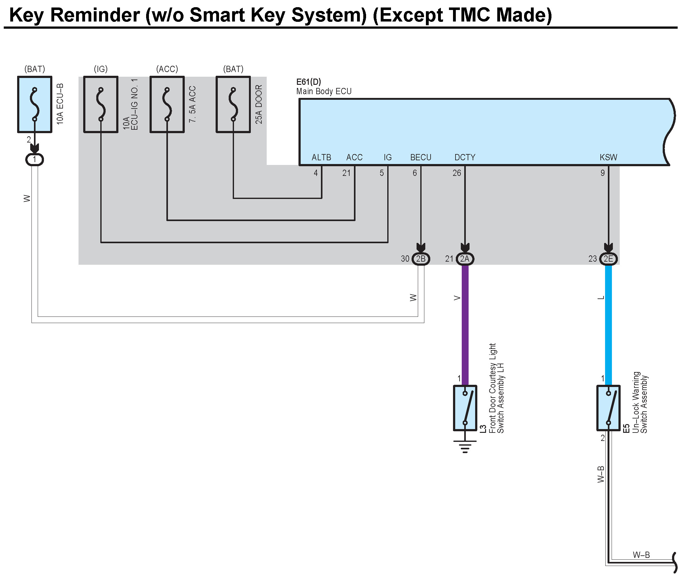 Key Reminder (w/o Smart Key System) (Except TMC Made) Part 1: