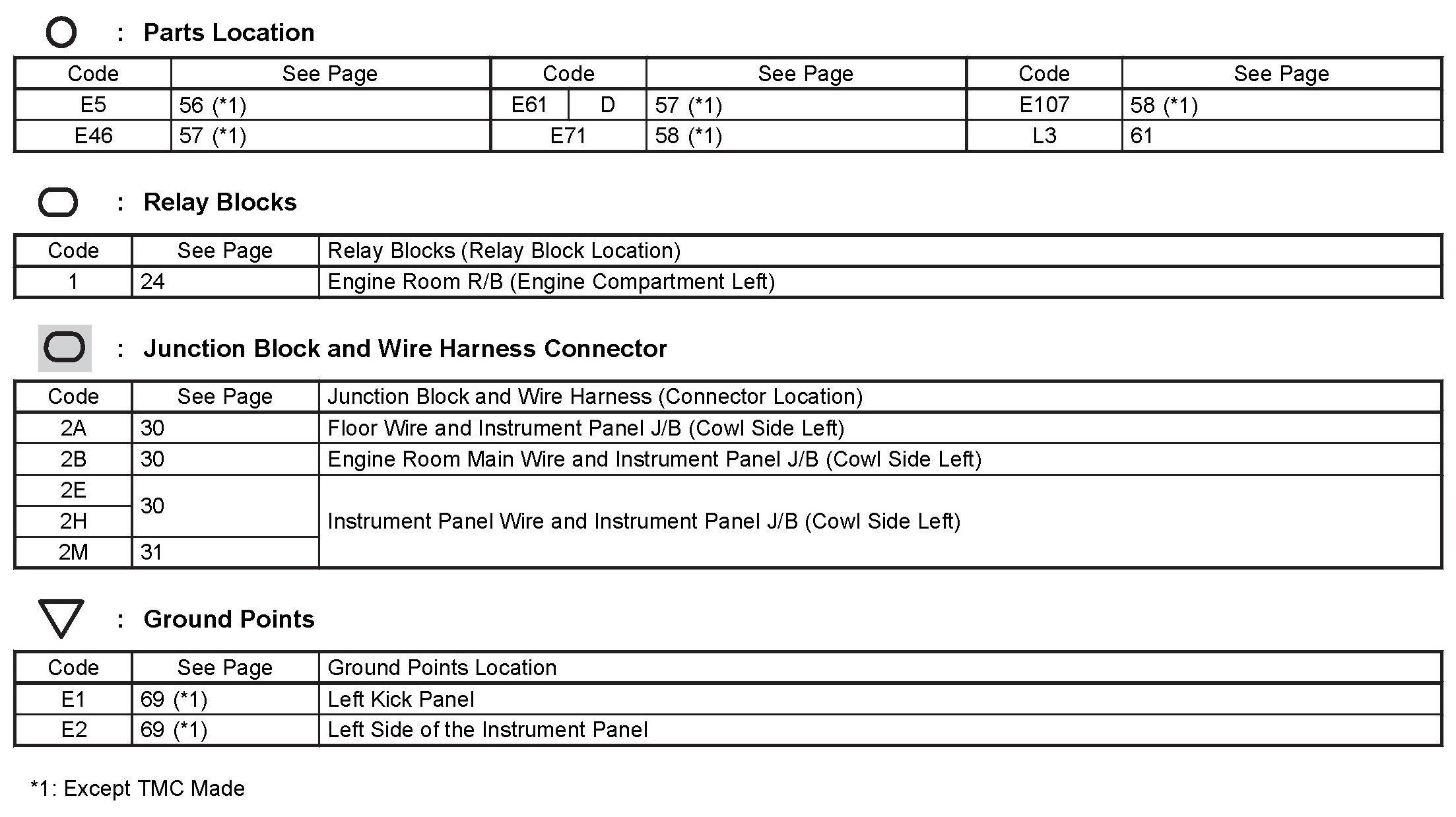 Locations: The locations of components, connectors, ground points, and splices referred to within these diagrams can be found at Vehicle Locations. Locations