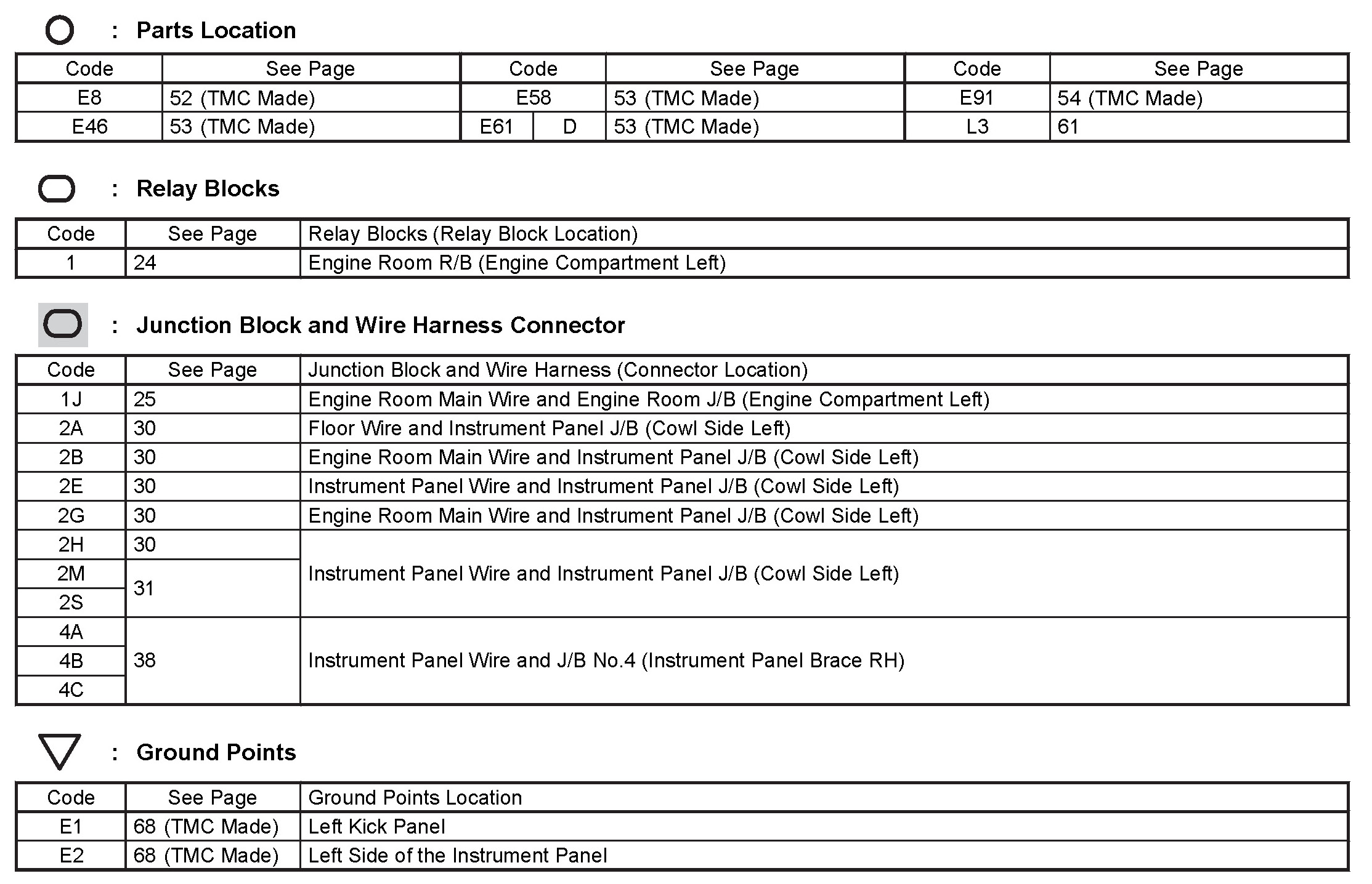 Locations: The locations of components, connectors, ground points, and splices referred to within these diagrams can be found at Vehicle Locations. Locations