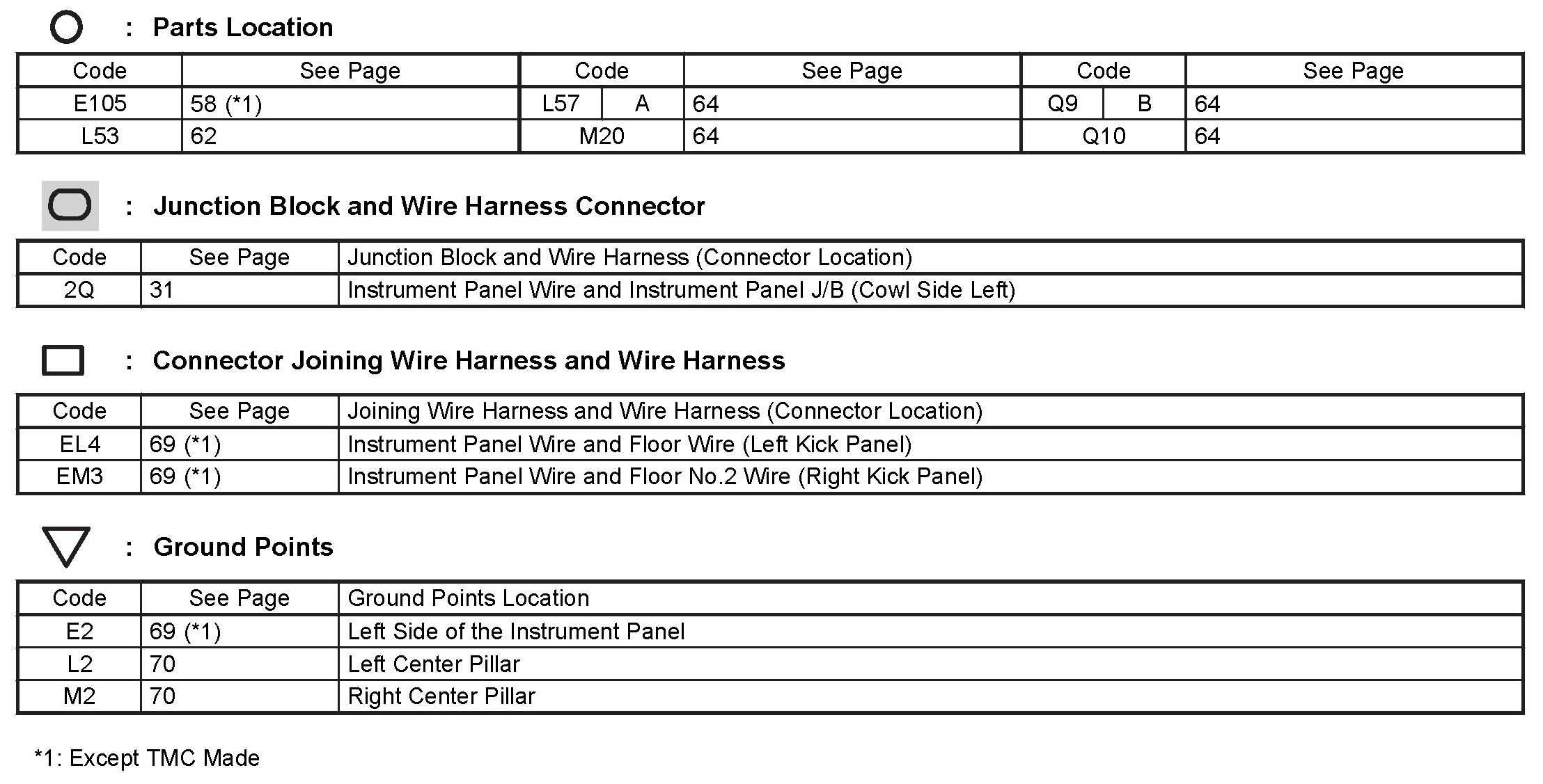 Locations: The locations of components, connectors, ground points, and splices referred to within these diagrams can be found at Vehicle Locations. Locations