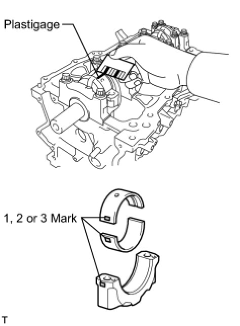 If replacing a bearing, replace it with one that has the same number as its respective connecting rod cap. Each standard bearing thickness is indicated by a 1, 2, or 3 mark on its surface.