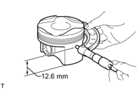 (d) Using a micrometer, measure the piston diameter at right angles to the piston pin hole, and at a point 12.6 mm (0.4961 in.) from the piston head.
