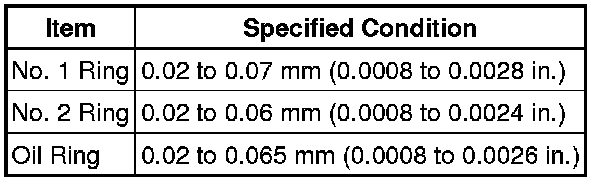 (a) Using a feeler gauge, measure the clearance between a new piston ring and the wall of the ring groove.