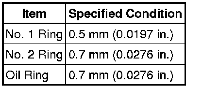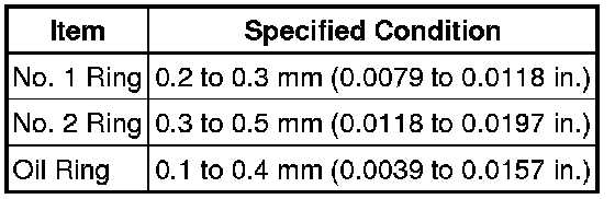 If the end gap is greater than the maximum, replace the piston ring. If the end gap is greater than the maximum, even with a new piston ring, replace the cylinder block.