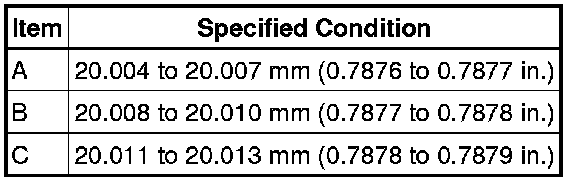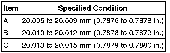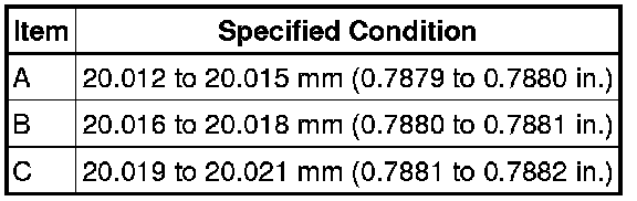20.012 to 20.021 mm (0.7879 to 0.7882 in.)