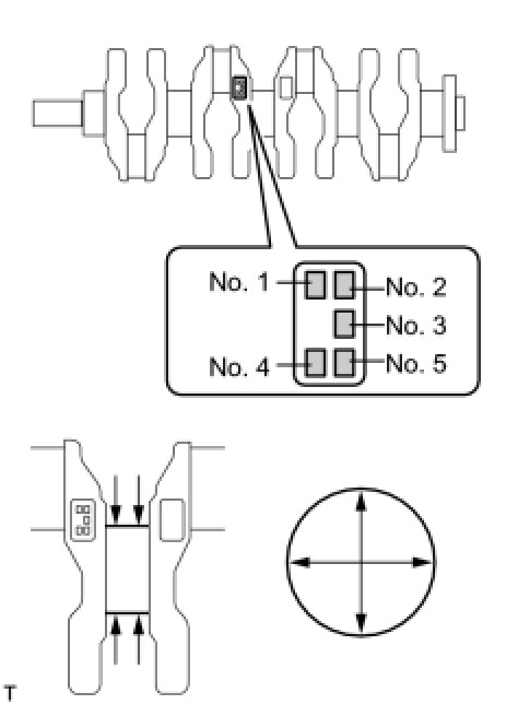 (e) Inspect each crank pin for taper and distortion as shown in the illustration.