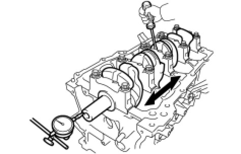 (b) Using a dial indicator, measure the thrust clearance while prying the crankshaft back and forth with a screwdriver.