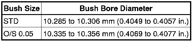 If the bush bore diameter of the cylinder head is greater than 10.306 mm (0.4057 in.), machine the bush bore to the dimension of 10.335 to 10.356 mm (0.4069 to 0.4077 in.) to install an O/S 0.05 valve guide bush. If the bush bore diameter of the cylinder head is greater than 10.356 mm (0.4077 in.), replace the cylinder head.