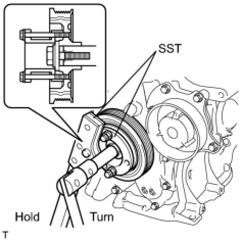 (a) Using SST, hold the pulley in place and loosen the pulley bolt.