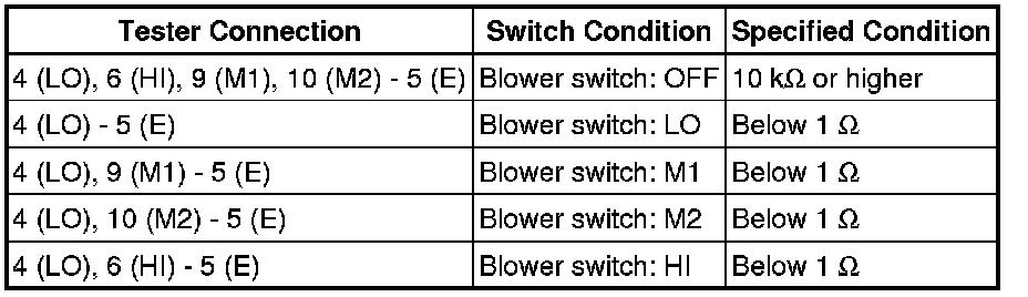 If the resistance is not as specified, replace the No. 2 heater control (blower switch).
