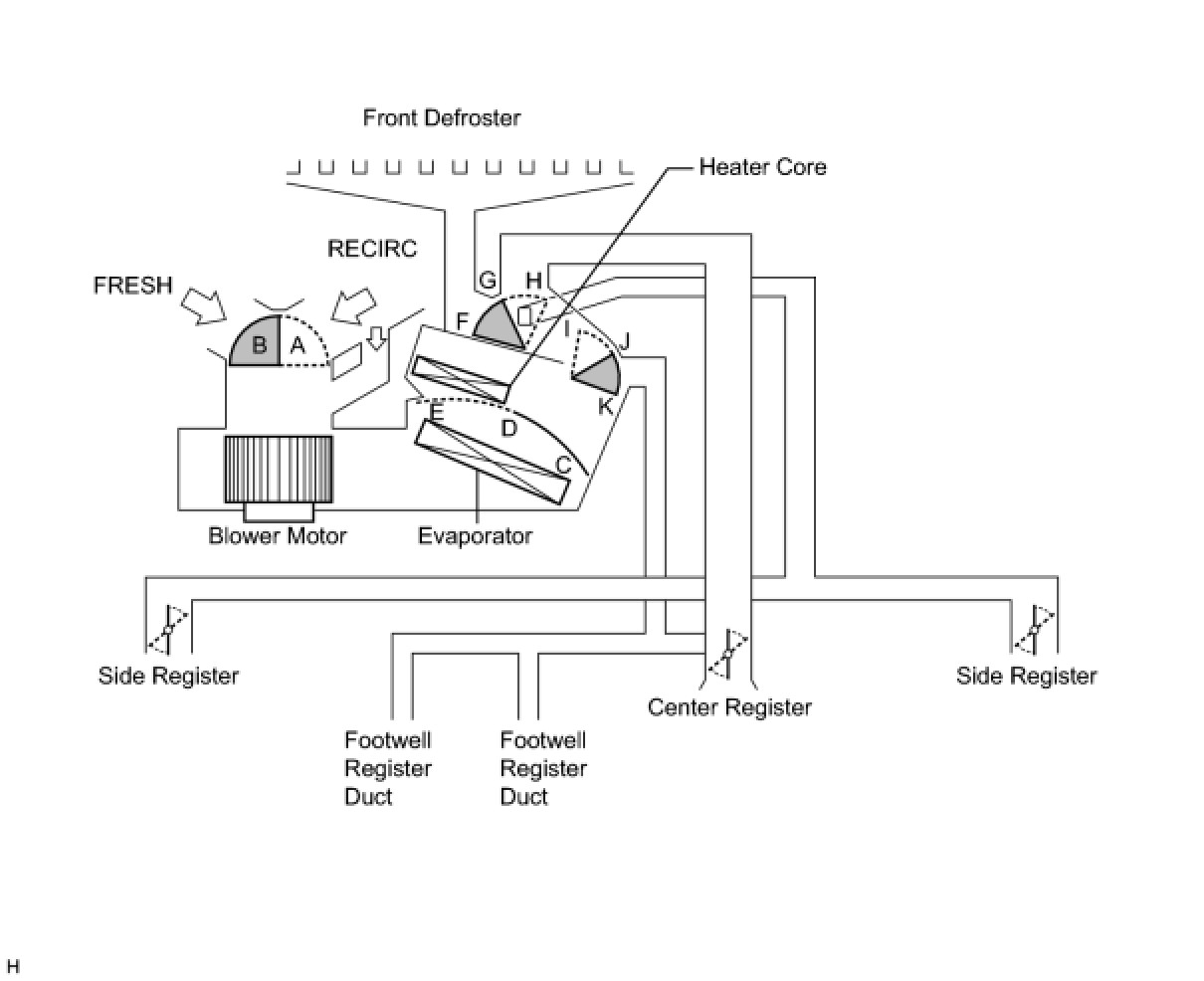 (1) The PTC heater is located above the heater core in the air conditioner unit.