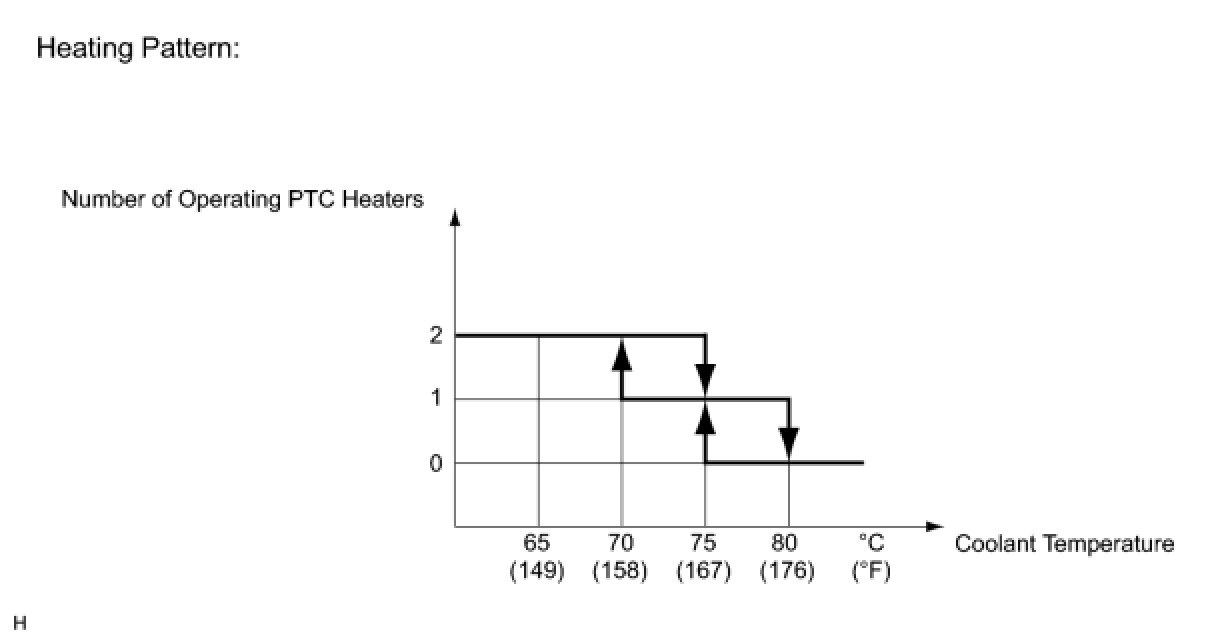For example, the number of the operating PTC heaters varies by the coolant temperature as in the graph below.
