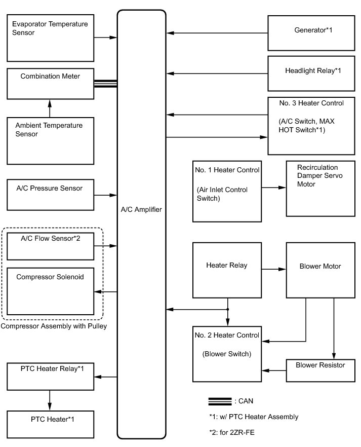 HEATING / AIR CONDITIONING: AIR CONDITIONING SYSTEM (for Manual Air Conditioning System): SYSTEM DIAGRAM; 2013 MY Corolla [07/2012 -]