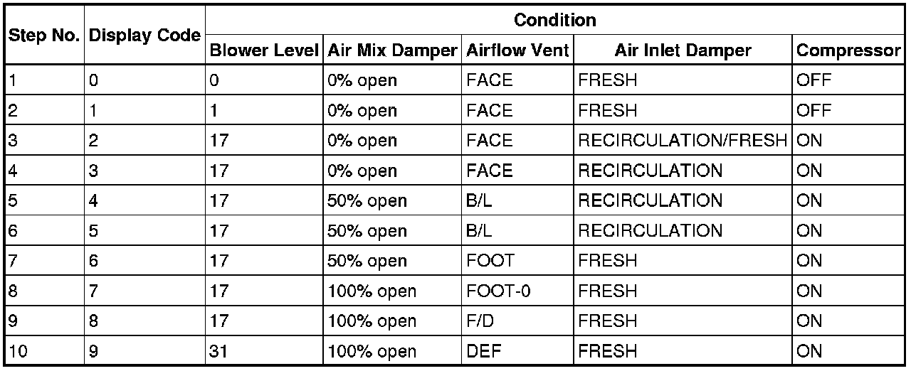 (d) As the actuator check is repeated from steps 1 to 10 at 1 second intervals, check the temperature and air flow visually and by hand.