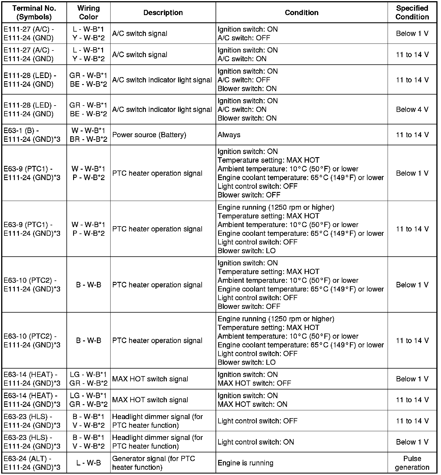* *3: w/ PTC Heater Assembly