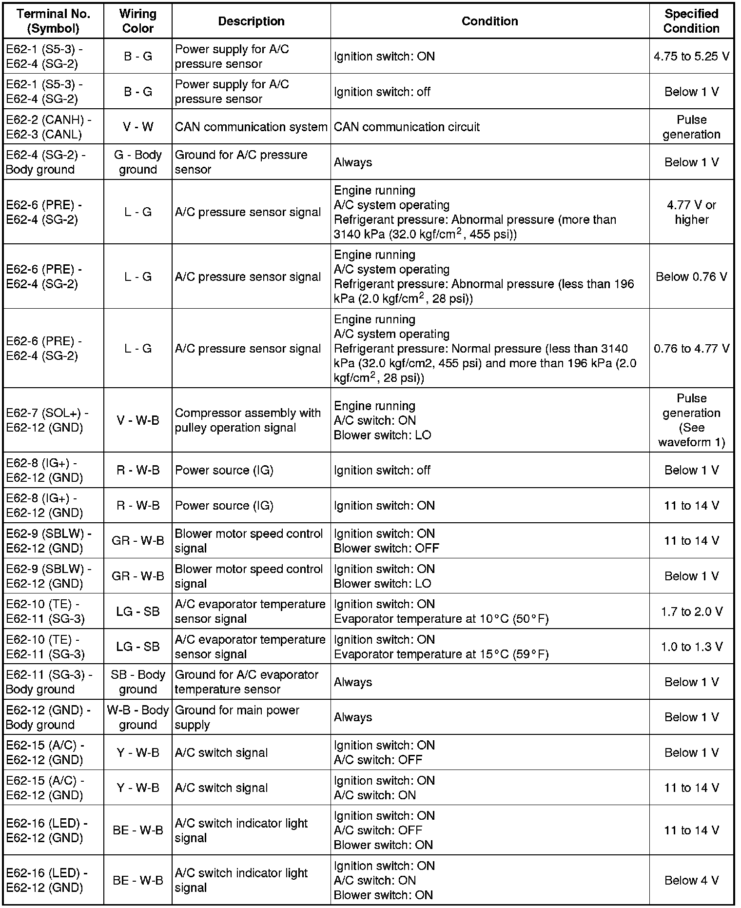 HEATING / AIR CONDITIONING: AIR CONDITIONING SYSTEM (for Manual Air Conditioning System): TERMINALS OF ECU; 2013 MY Corolla [07/2012 -]