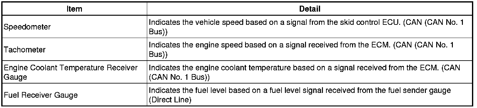 METER / GAUGE / DISPLAY: METER / GAUGE SYSTEM: SYSTEM DESCRIPTION; 2013 MY Corolla [07/2012 -]