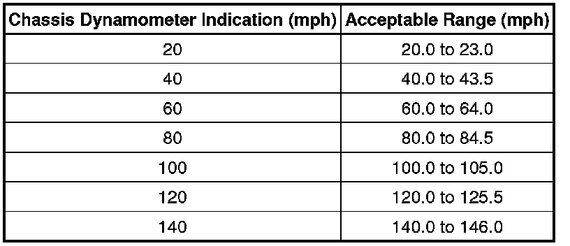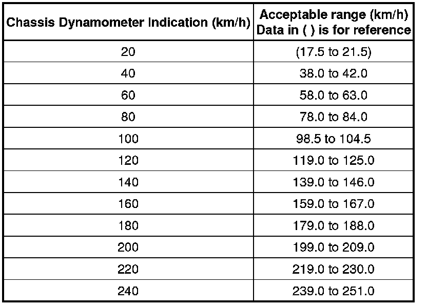(1) Using a speedometer tester (calibrated chassis dynamometer), check the speedometer indication according to the table below.