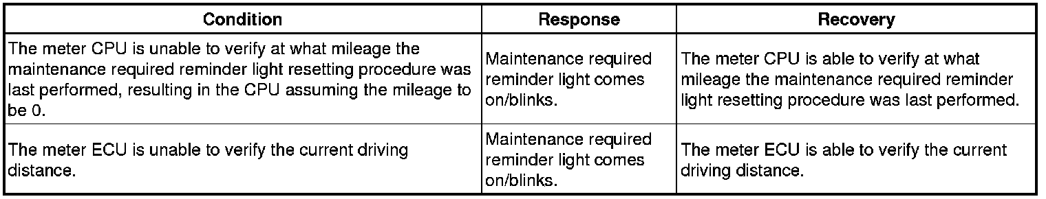 METER / GAUGE / DISPLAY: METER / GAUGE SYSTEM: FAIL-SAFE CHART; 2013 MY Corolla [07/2012 -]
