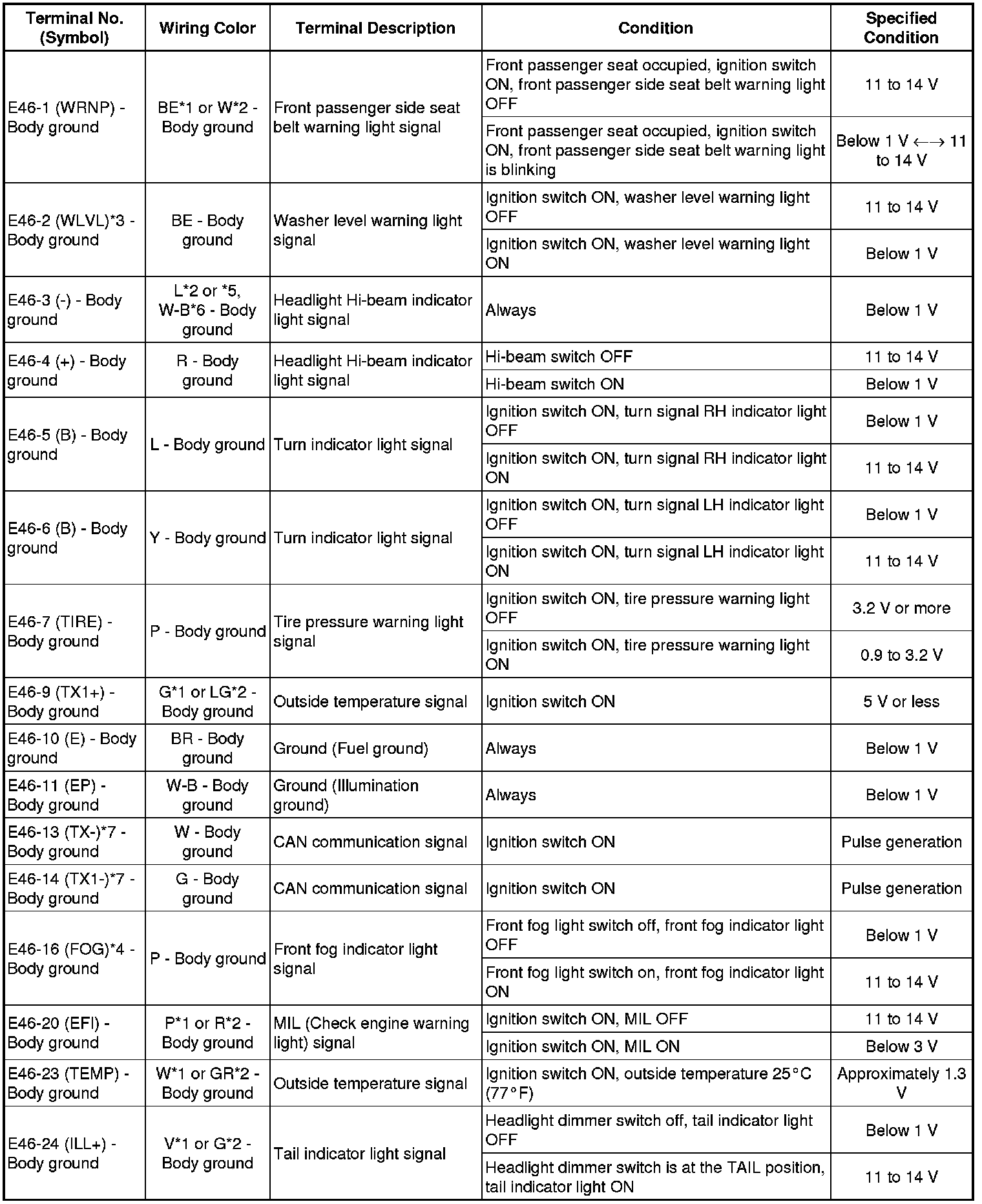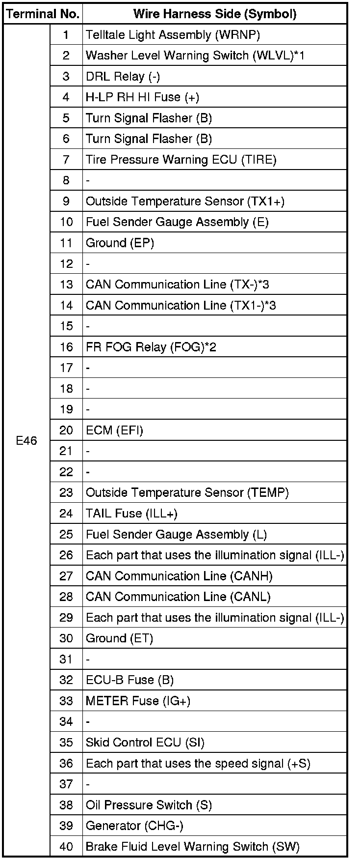 METER / GAUGE / DISPLAY: METER / GAUGE SYSTEM: TERMINALS OF ECU; 2013 MY Corolla [07/2012 -]