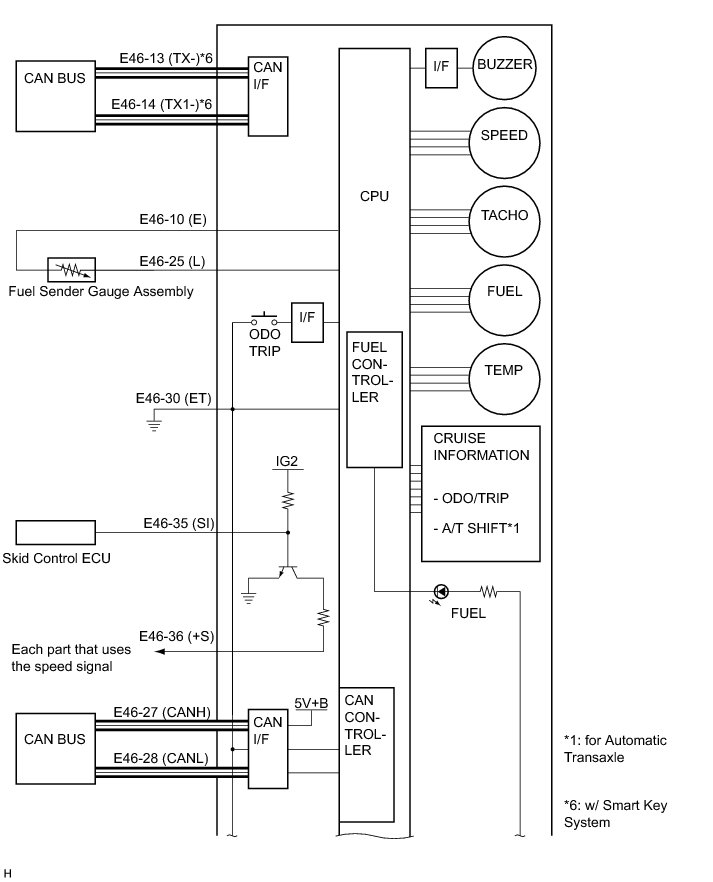 * Vehicle speed signal that has been received and transmitted via the direct line is used for another system, and is not used for combination meter operation.