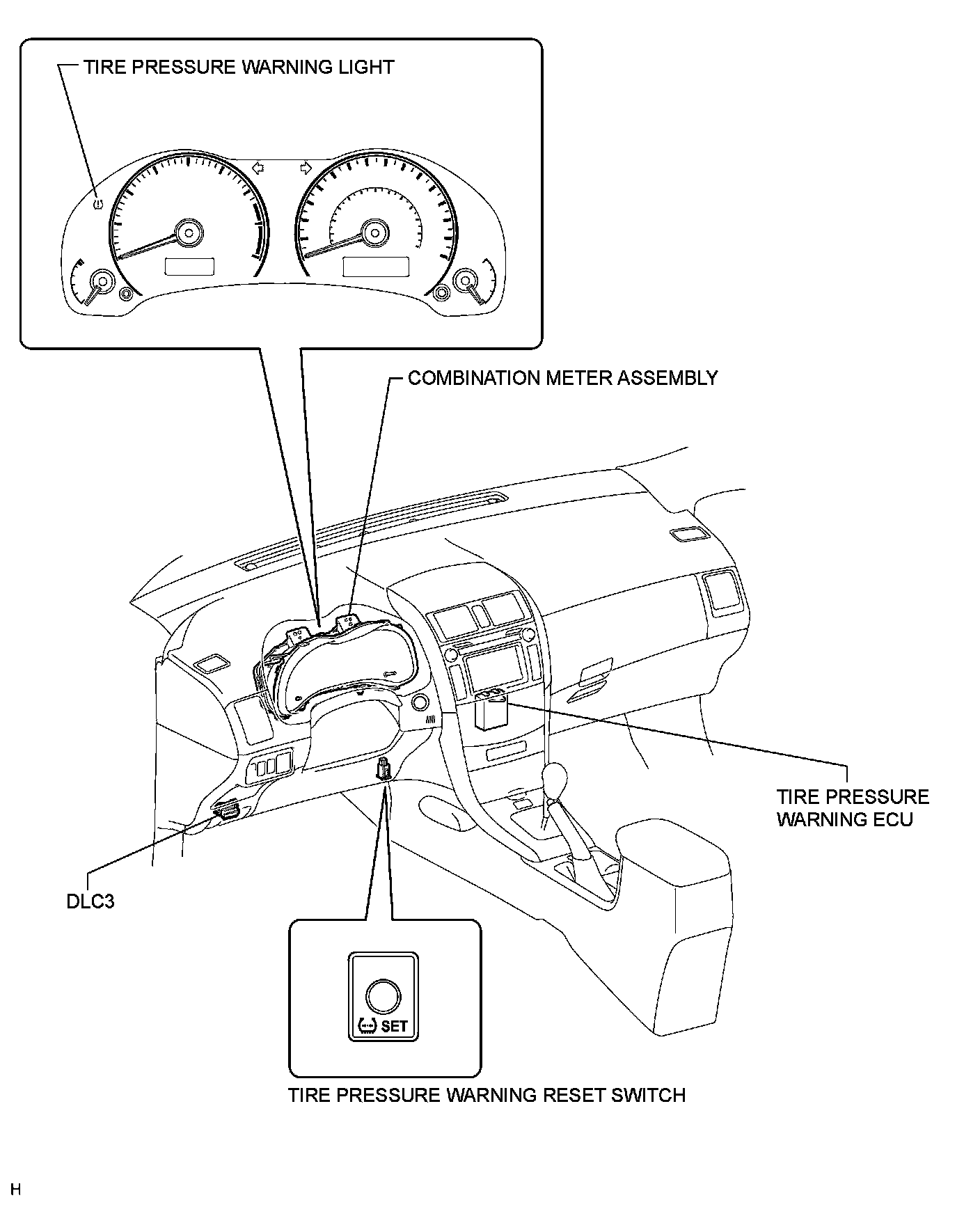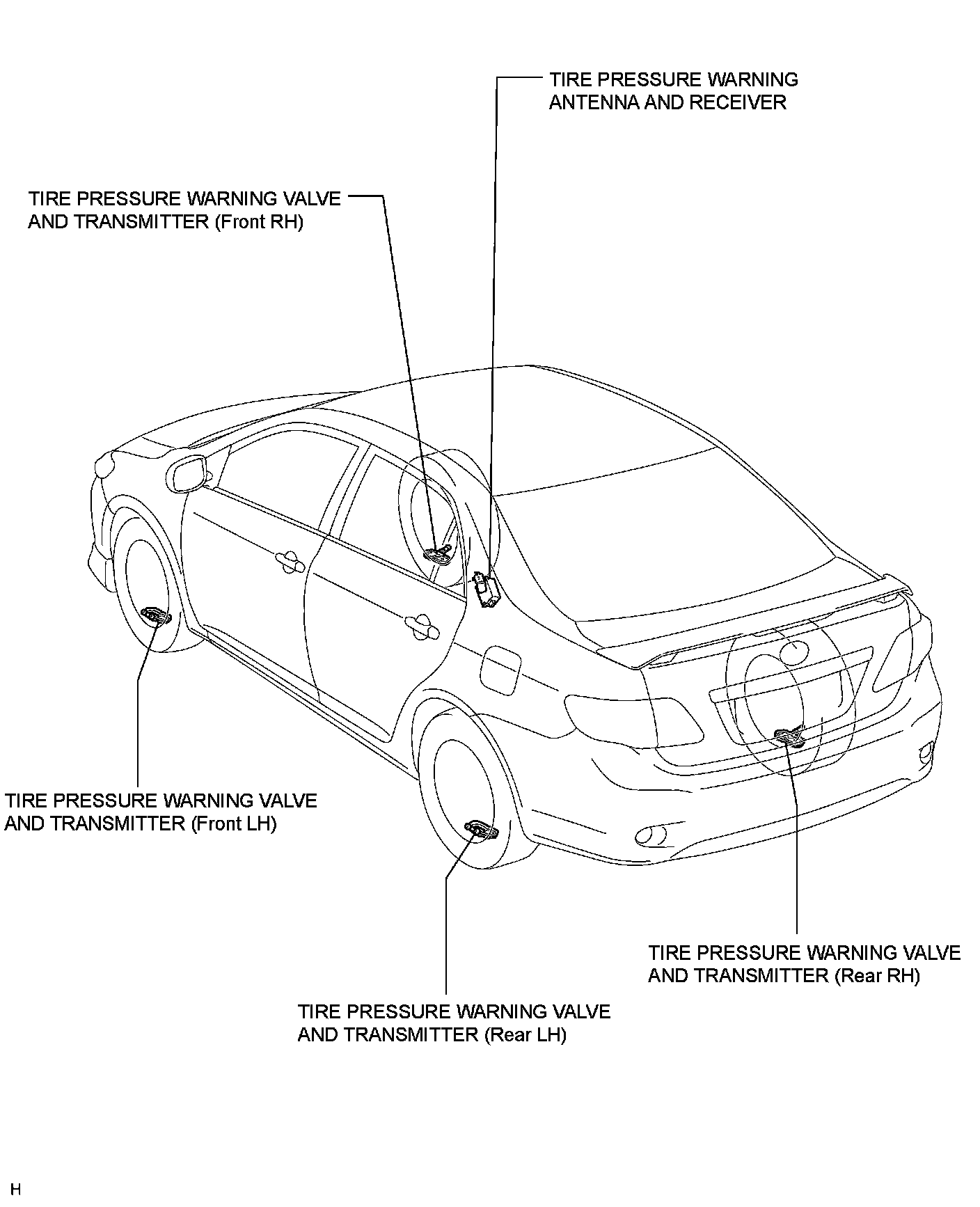 TIRE PRESSURE MONITORING: TIRE PRESSURE WARNING SYSTEM: PARTS LOCATION; 2013 MY Corolla [07/2012 -]