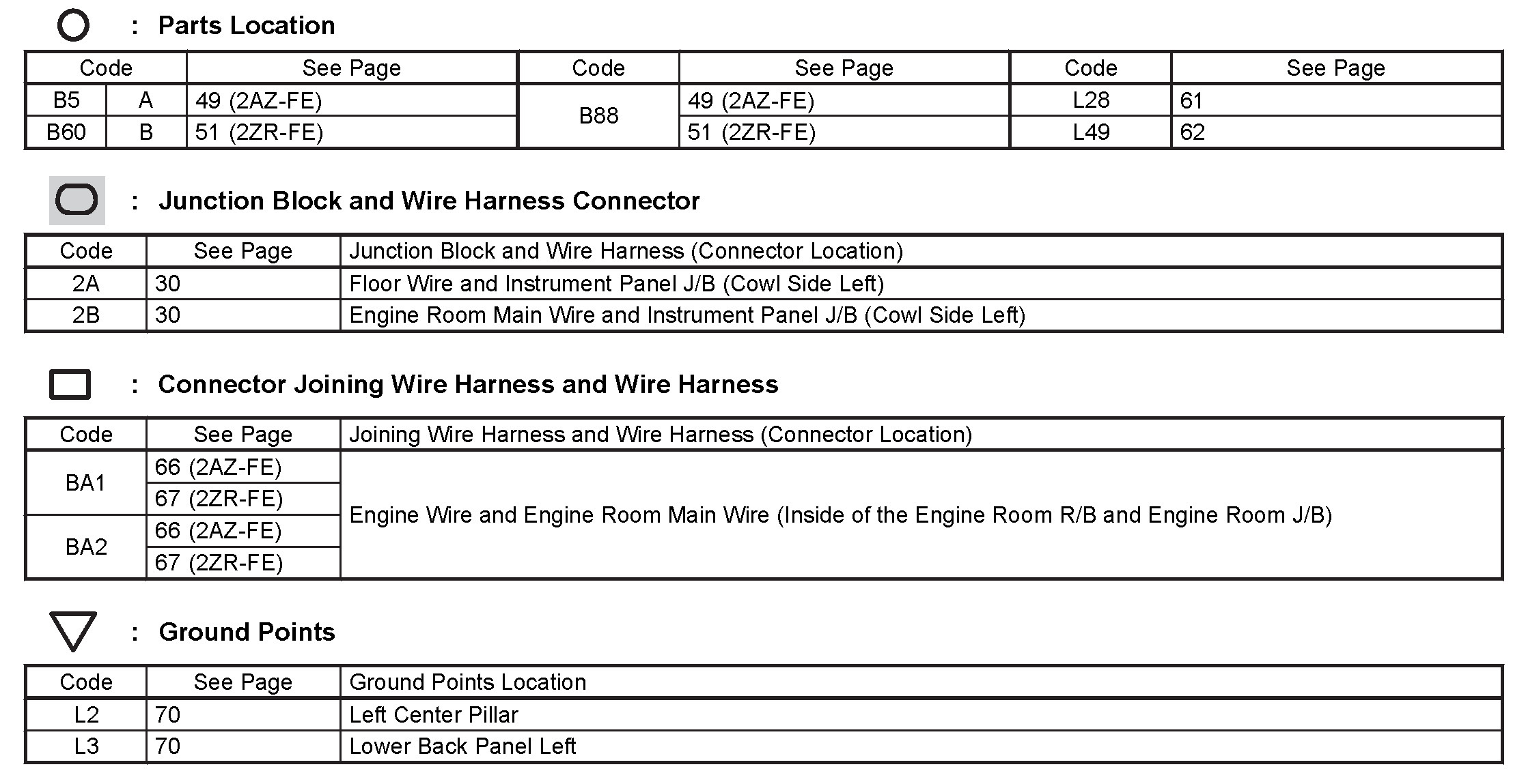 Locations: The locations of components, connectors, ground points, and splices referred to within these diagrams can be found at Vehicle Locations. Locations