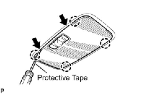 (e) Using a screwdriver, disengage the 4 claws and remove the No. 1 room light assembly.