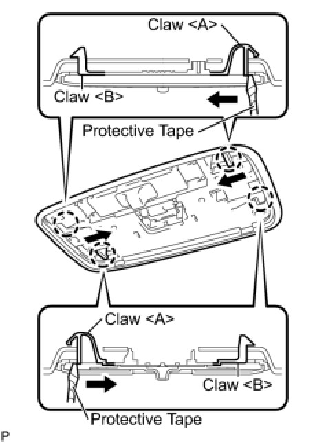 (b) Disengage the claw and guide in the order shown in the illustration, and remove the room light cover.