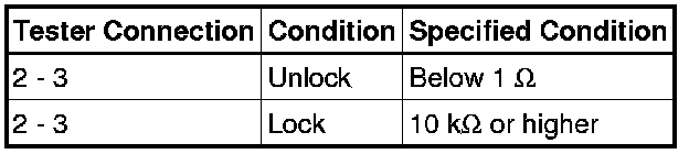 If the result is not as specified, replace the luggage compartment door lock assembly.