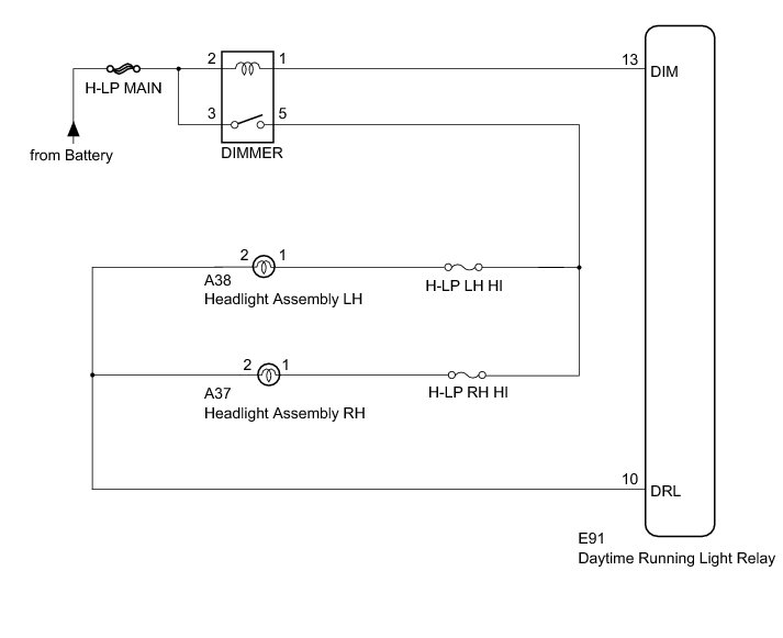* The daytime running light relay dims the high beam headlights when operating them as daytime running lights.