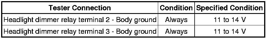 3. CHECK HARNESS AND CONNECTOR (HEADLIGHT DIMMER RELAY - DAYTIME RUNNING LIGHT RELAY)