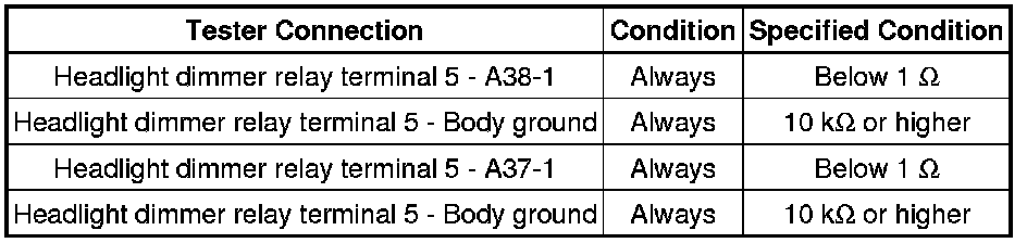 4. CHECK HARNESS AND CONNECTOR (HEADLIGHT DIMMER RELAY - HEADLIGHT ASSEMBLY)