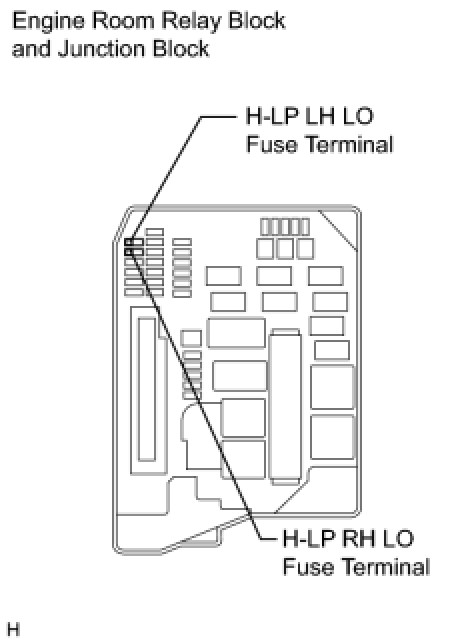 (b) Remove the H-LP LH LO fuse and H-LP RH LO fuse from the engine room relay block.