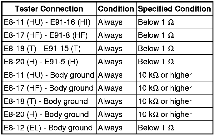 (c) Measure the resistance according to the value(s) in the table below.