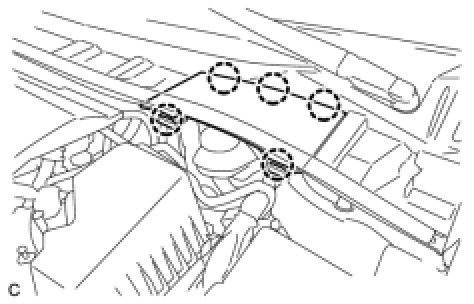 (b) Disengage the 5 claws and remove the center cowl top ventilator louver.