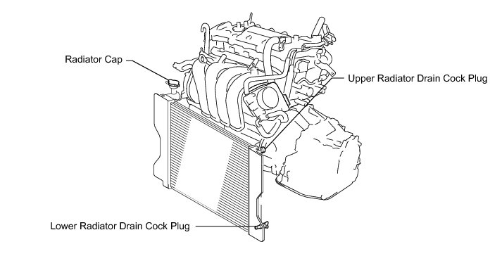 Do not loosen the lower radiator drain cock plug while the engine and radiator are still hot.