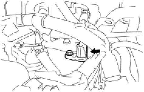 (1) Disconnect the duty vacuum switching valve connector and 3 engine wire harness clamps.