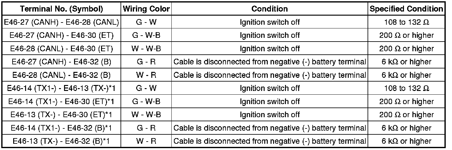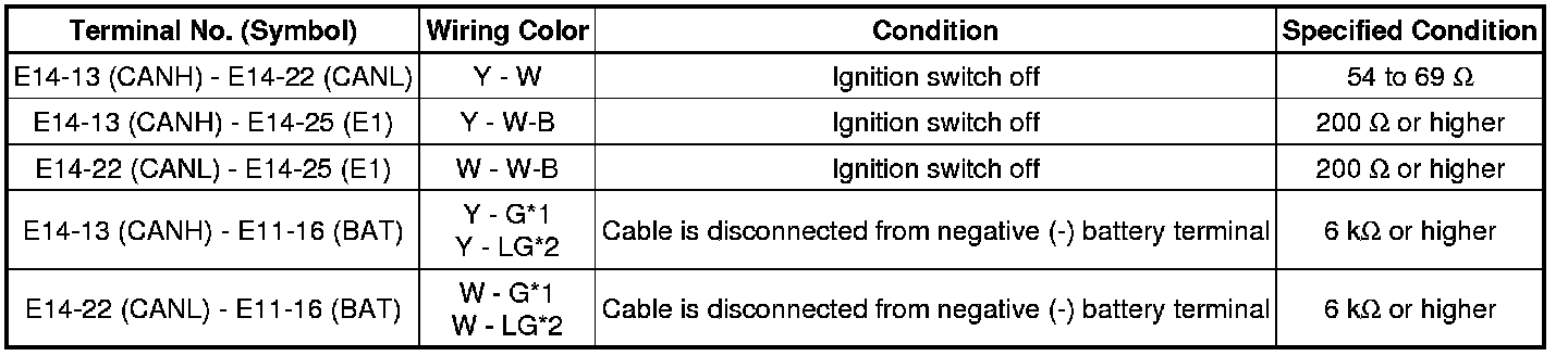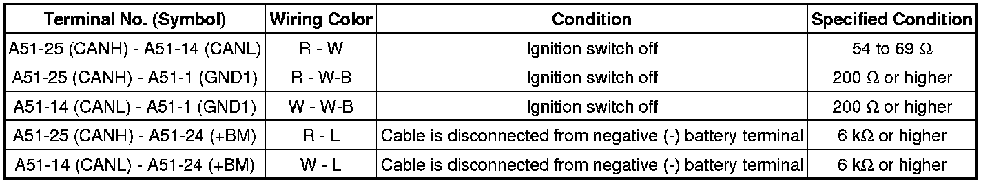 * Turn the ignition switch off before measuring the resistance of the CAN bus main wires and CAN bus branch wires.