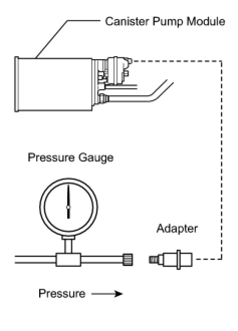 (b) Connect the EVAP pressure tester tool to the canister pump module with the adapter.