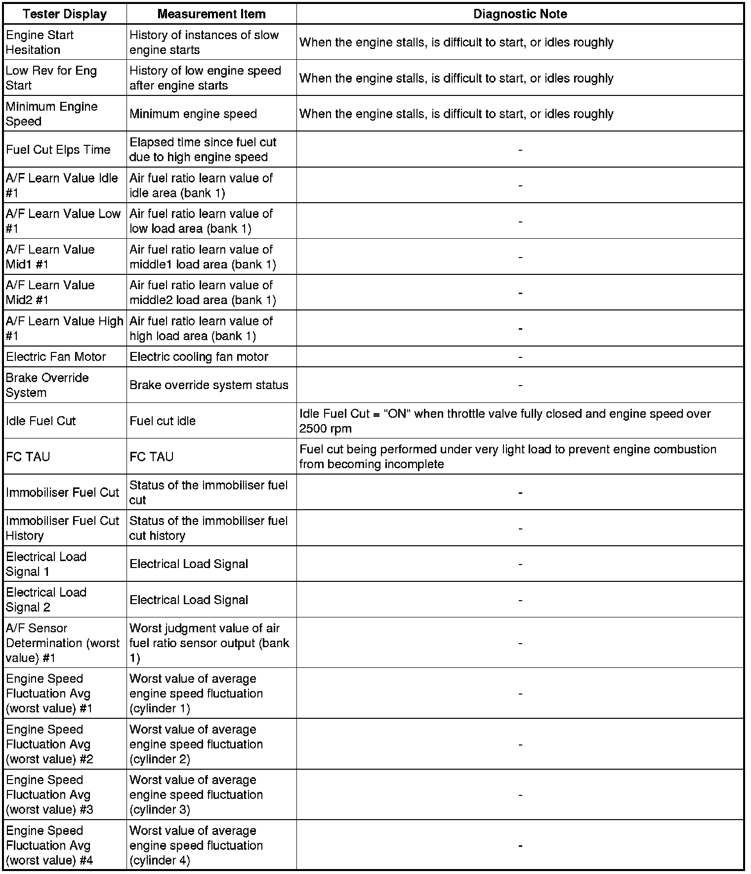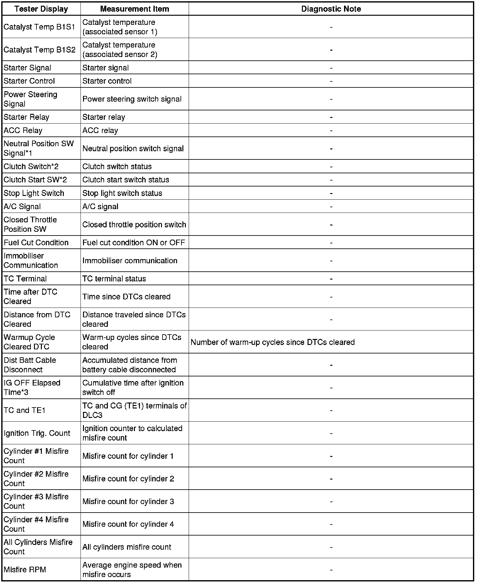 3. LIST OF FREEZE FRAME DATA
