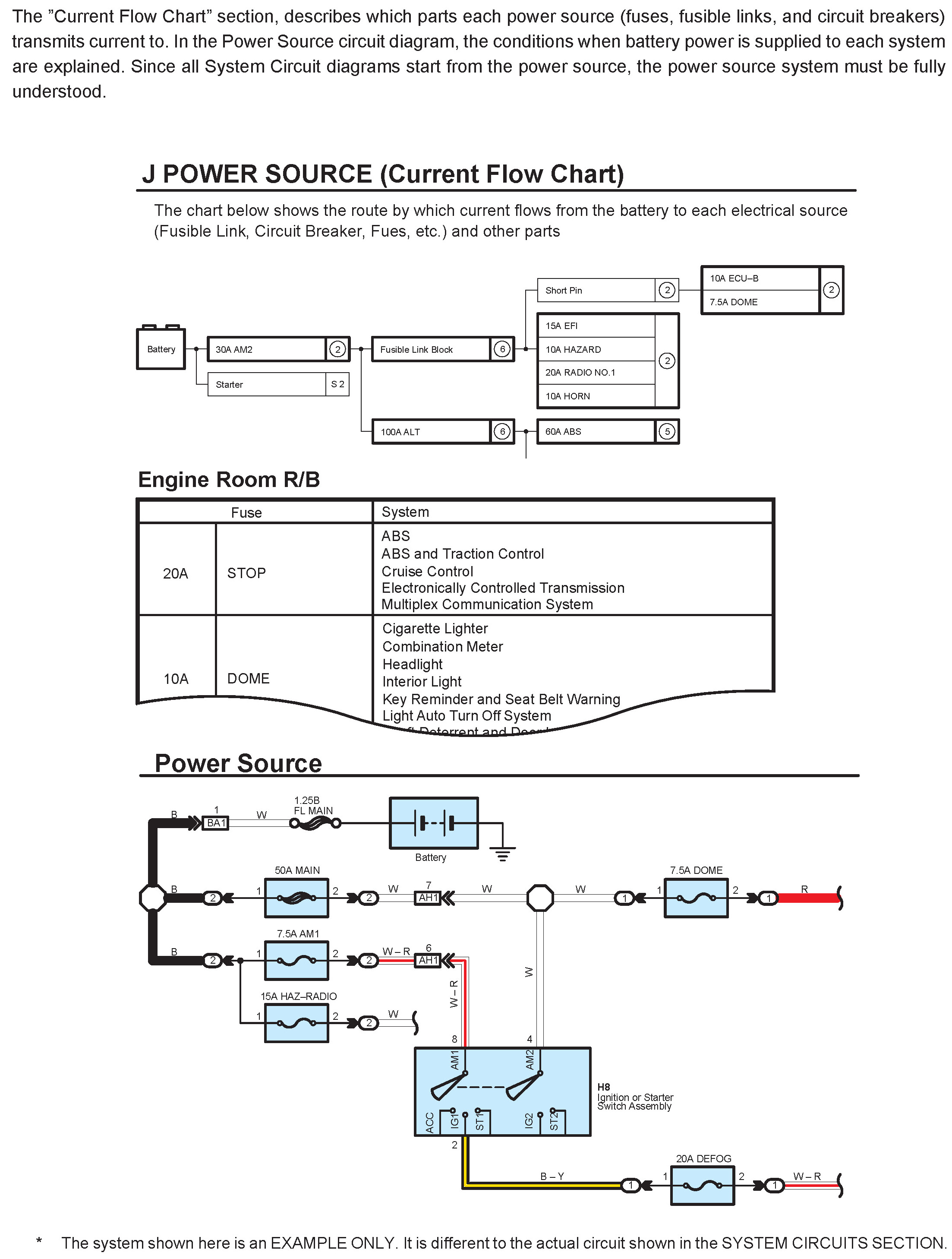 The actual wiring of each system circuit is shown from the point where the power source is received from the battery as far as each ground point. (All circuit diagrams are shown with the switches in the OFF position.)
