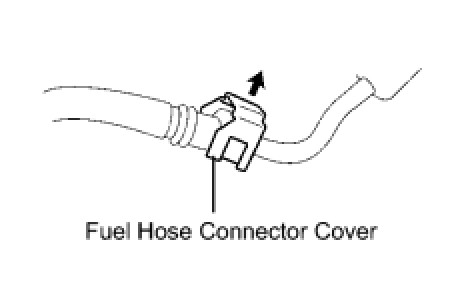 (2) Disengage the lock claws by raising the fuel hose connector cover as shown in the illustration.
