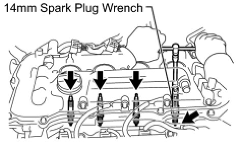 (a) Using a 14 mm spark plug wrench, remove the 4 spark plugs.