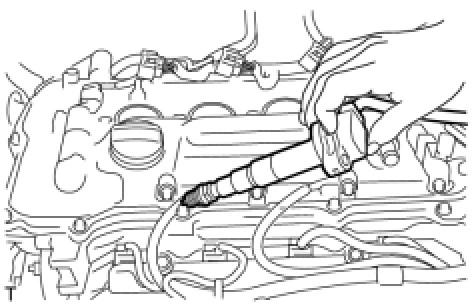 (d) Install the spark plug into the ignition coil, and then connect the ignition coil connector.