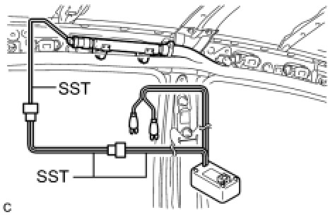 (4) Maintaining enough clearance for the SST wire harness in the rear side window, close all doors and windows of the vehicle.