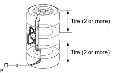 (2) Place at least 2 tires onto the tire tied to the curtain shield airbag assembly. The top tire should have the disc wheel installed.