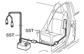 (1) Connect the SST connector to the front seat side airbag assembly connector.