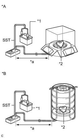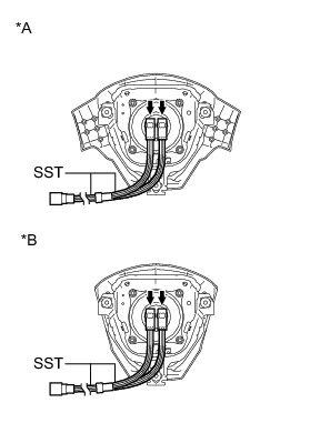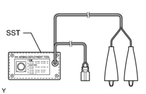 * When deploying the airbag, always use the specified SST (SRS Airbag Deployment Tool). Perform the operation in a place away from electrical noise.